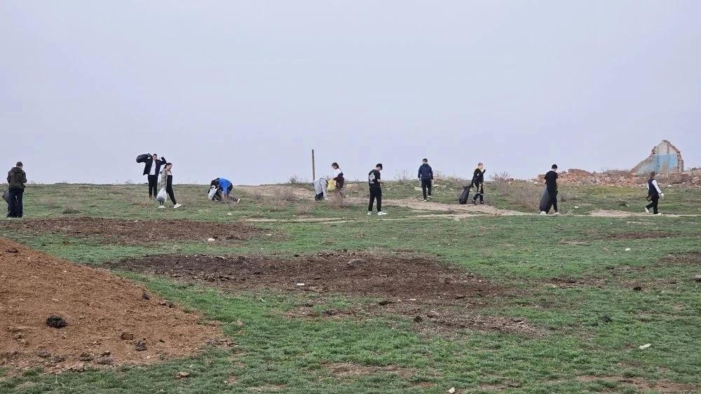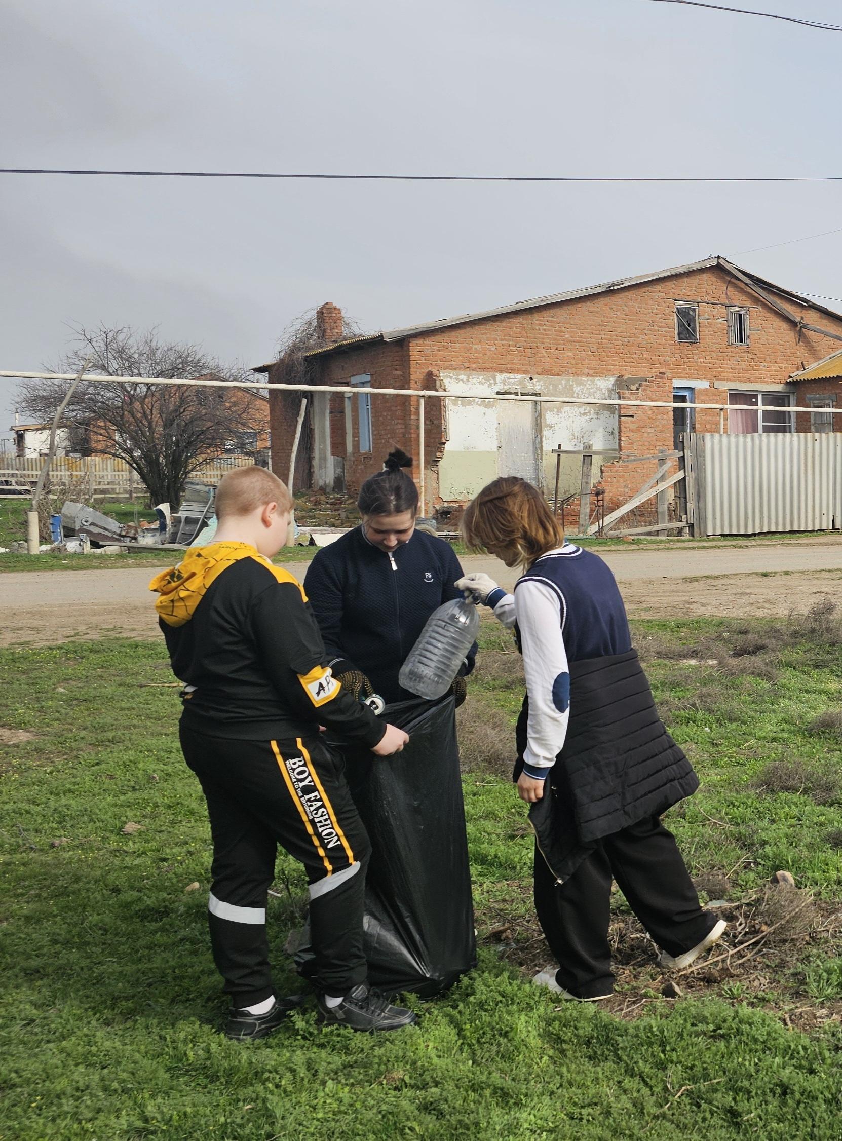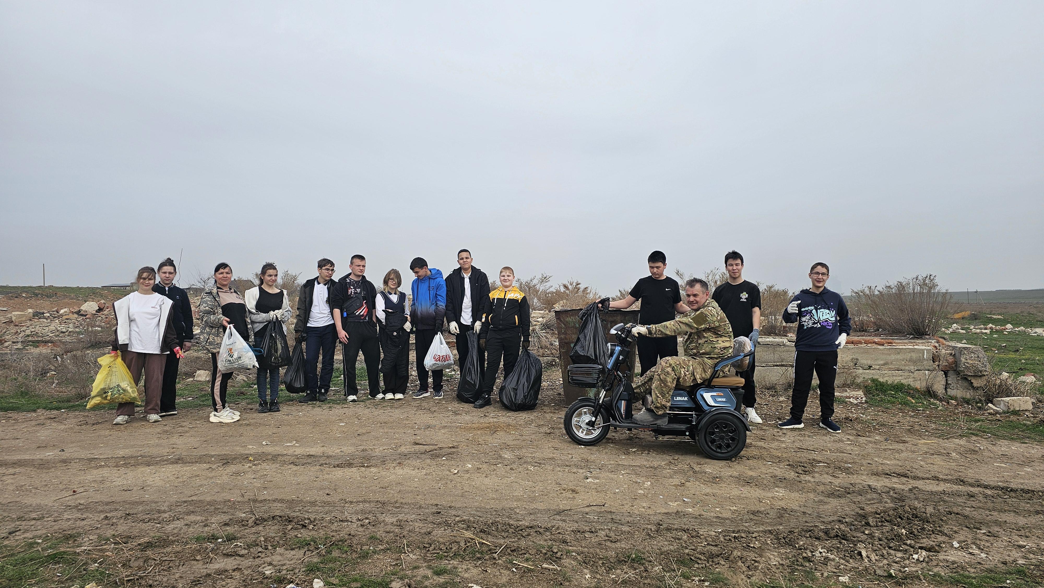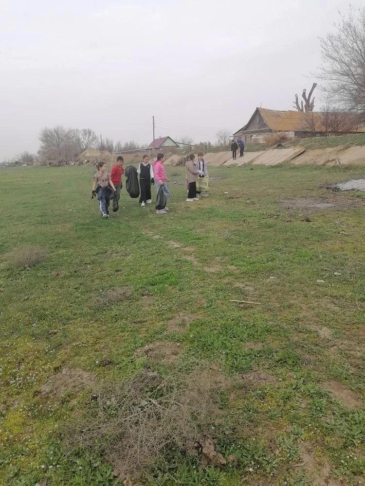 Они собирали мусор в границах села, вдоль автомобильной дороги и по берегу реки Бахтемир.